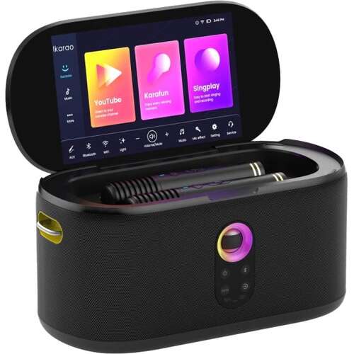 רמקול אלחוטי נייד לקריוקי ומסיבות עם מסך 10.1 אינץ' HD דגם Shell S1 מבית Ikarao – מגיע עם 2 מיקרופונים אלחוטיים